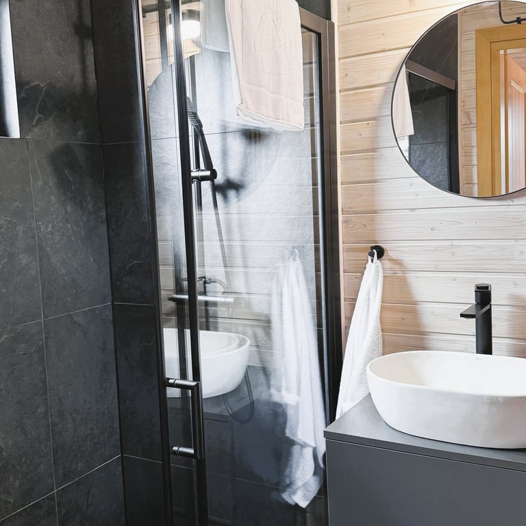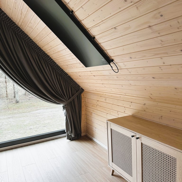 Dom „Sztokholm” urzeka swoją elegancją i minimalistycznym stylem. Dwupiętrowe wnętrze zostało starannie zaprojektowane, aby zapewnić maksymalną wygodę dla gości. Na parterze znajdują się przestronny salon z kominkiem oraz aneks kuchenny, które tworzą idealne miejsce do wspólnego spędzania czasu.